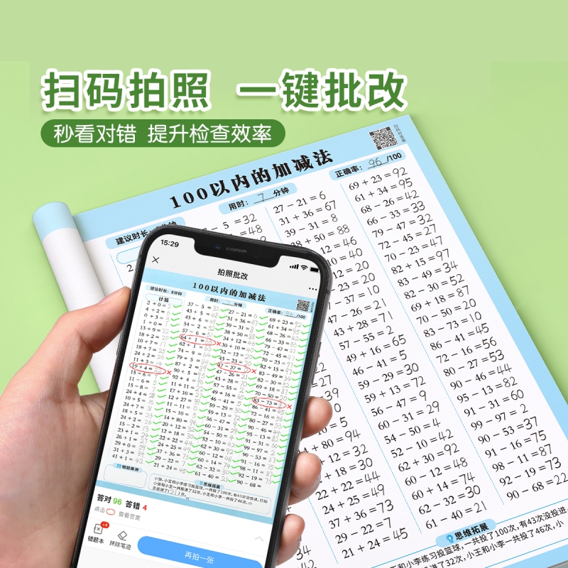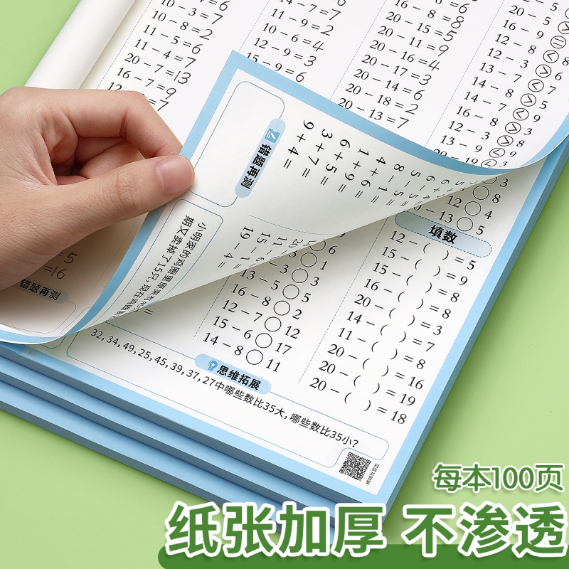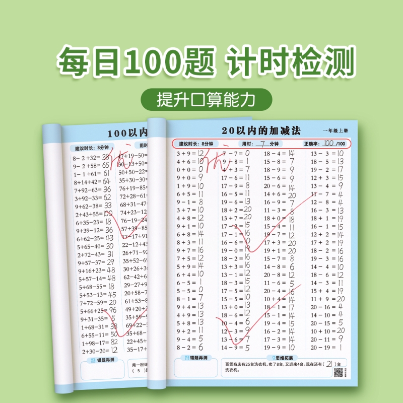 100以内加减法计算数同步速算本专项练习册思维训练 一年级口算天天练数学练习题上册下册人教版 二三四五六口算题卡每天一练10