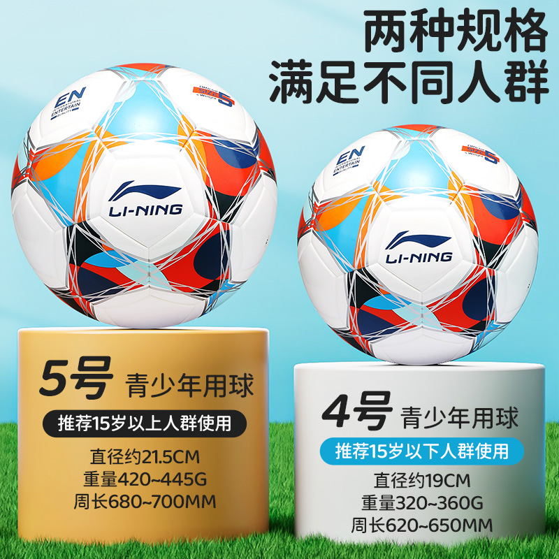 李宁足球儿童女生小学生4号5号男童比赛成人中考标准专业训练用球