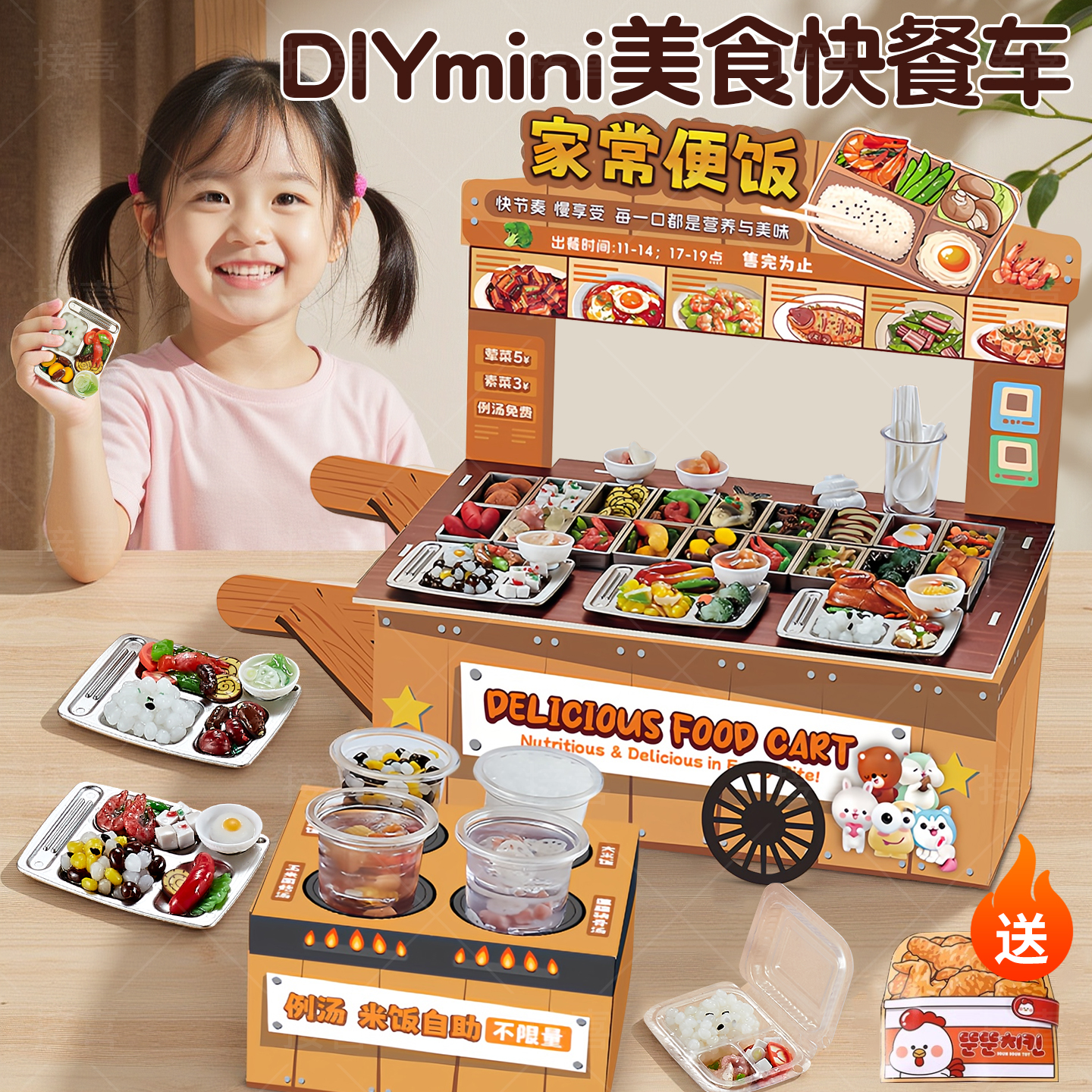 DIY美食快餐车微缩迷你食玩糖水铺过家家玩具女孩手工6岁以上生日