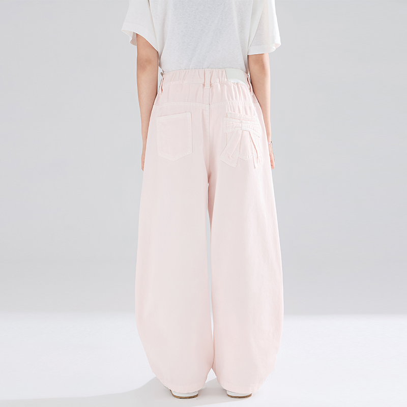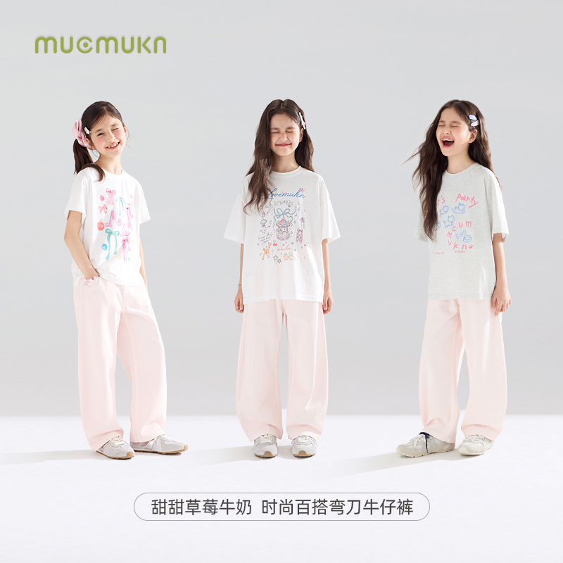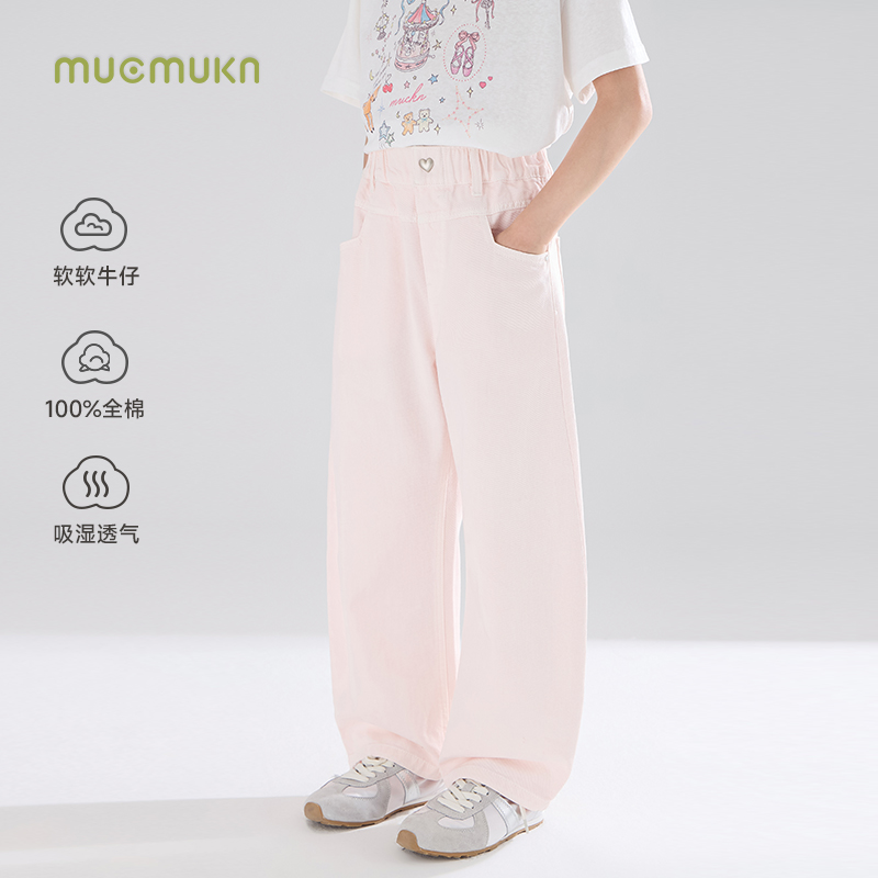 淡粉色弯刀香蕉裤 亲肤软软全棉牛仔 子牛仔女童夏新 甜心奶昔