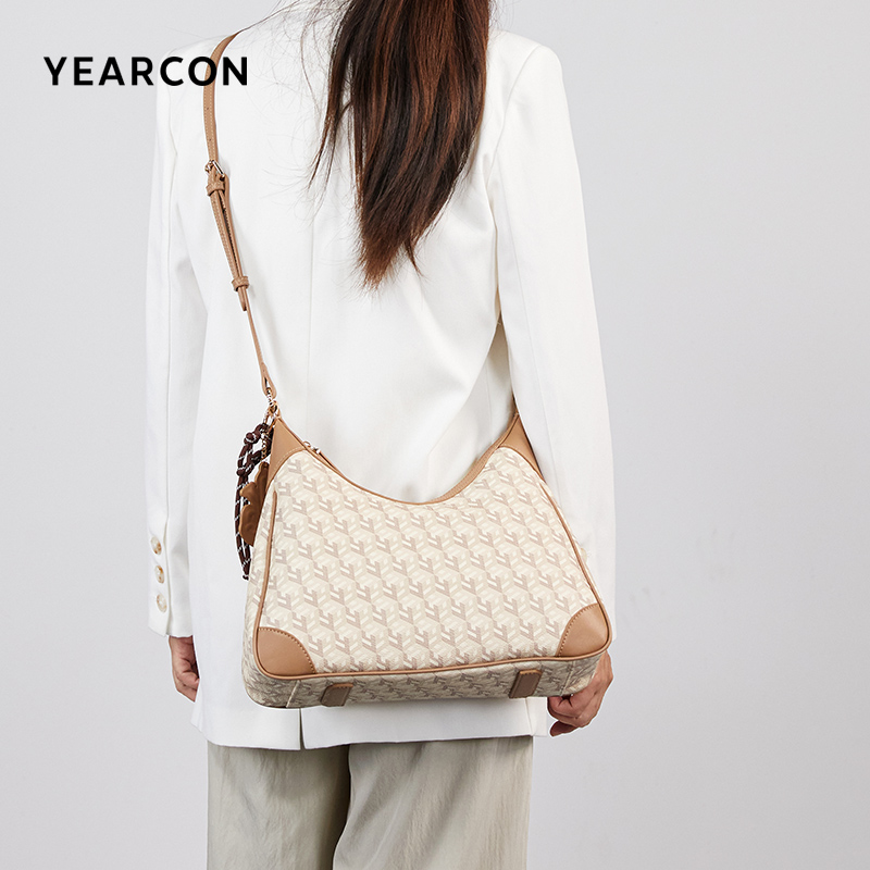 意尔康托特包新款 休闲水桶包 Hobo包老花腋下包通勤单肩斜挎包时尚