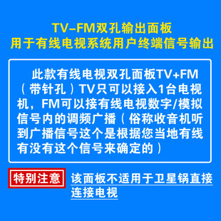 墙壁86型有线电视TV FM双孔输出终端盒面板TV电视带FM广播暗装