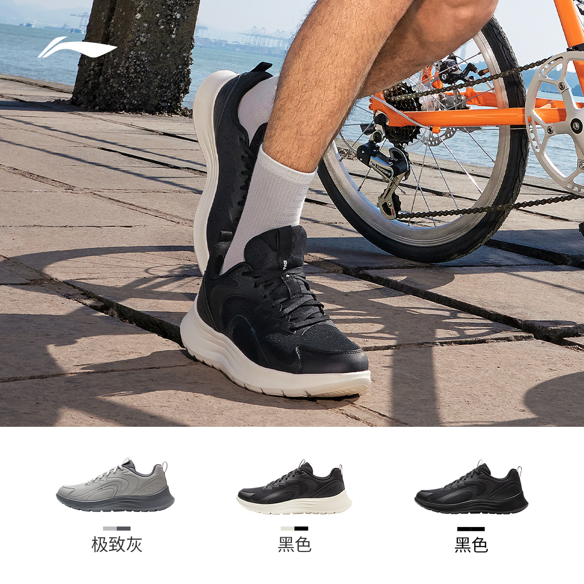 秋季 男鞋 新款 轻便软底减震慢跑休闲鞋 李宁轻羽 黑色运动鞋 跑步鞋