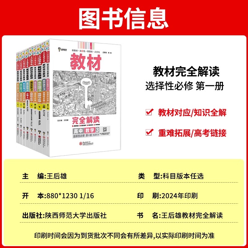 王后雄学案教材完全解读数学高一必修一物理化学24王厚雄高二高三选择性必修二三语文英语人教版 2026新版 选修高中全解 新华文轩