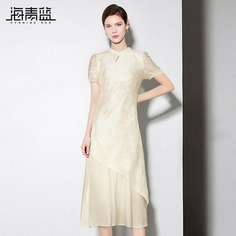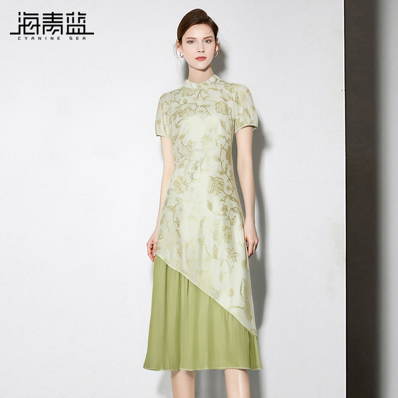 女装 海青蓝 中式 短袖 高级漂亮好看女士裙子 连衣裙夏女2025新款
