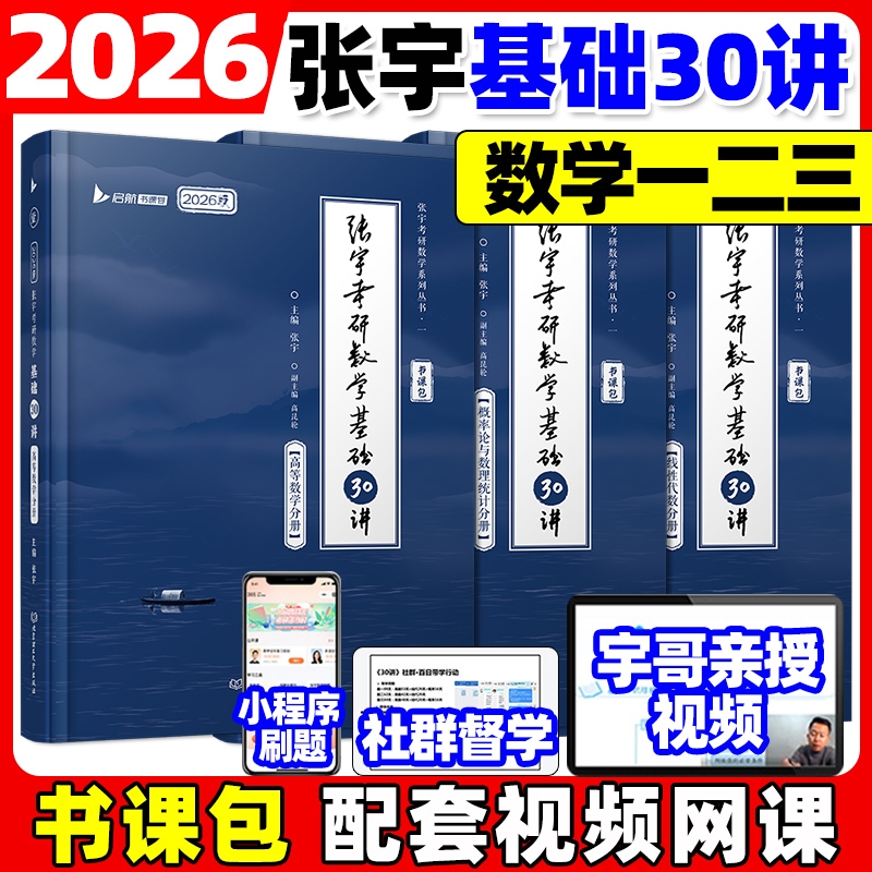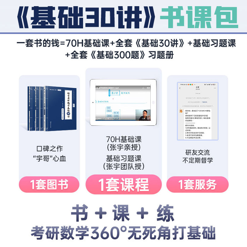 2026年张宇考研数学基础30讲300题学霸养成攻略全套复习全书资料历年真题数学一二三高数18讲线代9讲概率论搭1000题 官方书课包