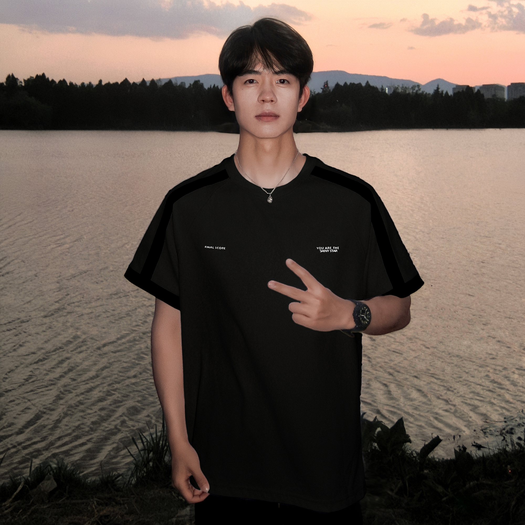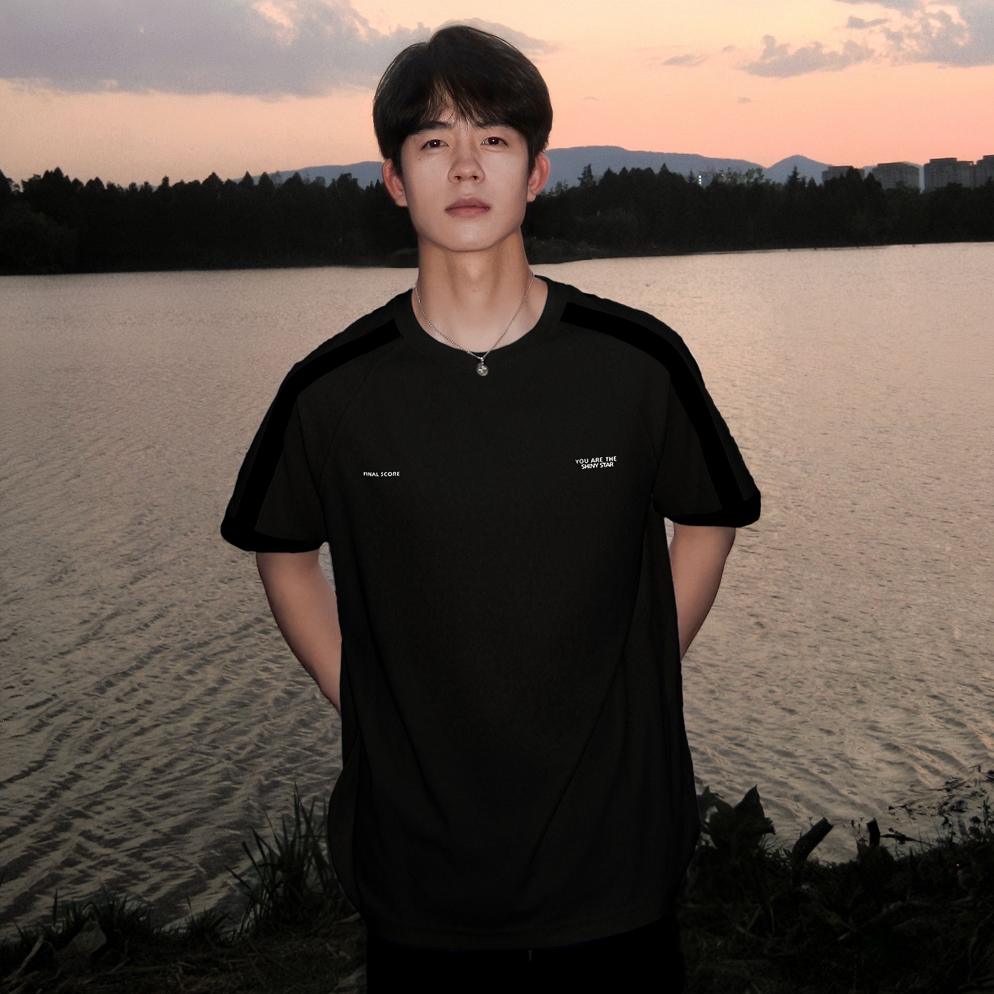 T恤拼接宽松圆领上衣插肩袖 男短袖 短t潮流内搭男 新款 唐狮2025夏季