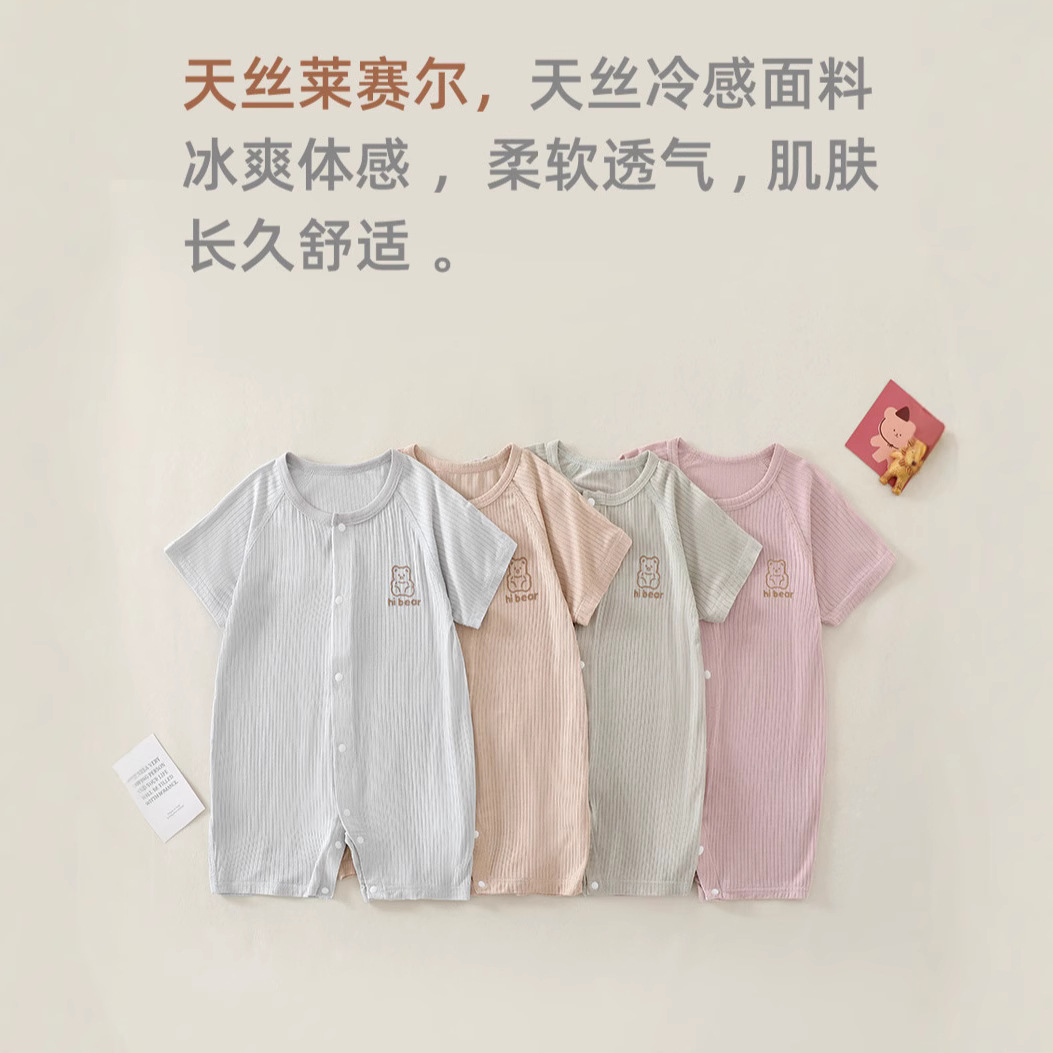 无骨哈衣提花爬服 天丝莱赛尔男女宝宝衣服夏装 婴儿连体衣夏季 薄款