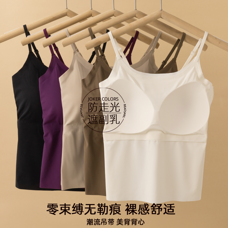 外穿吊带背心女带胸垫美背冰丝无痕内衣春夏新款 打底内搭抹胸上衣