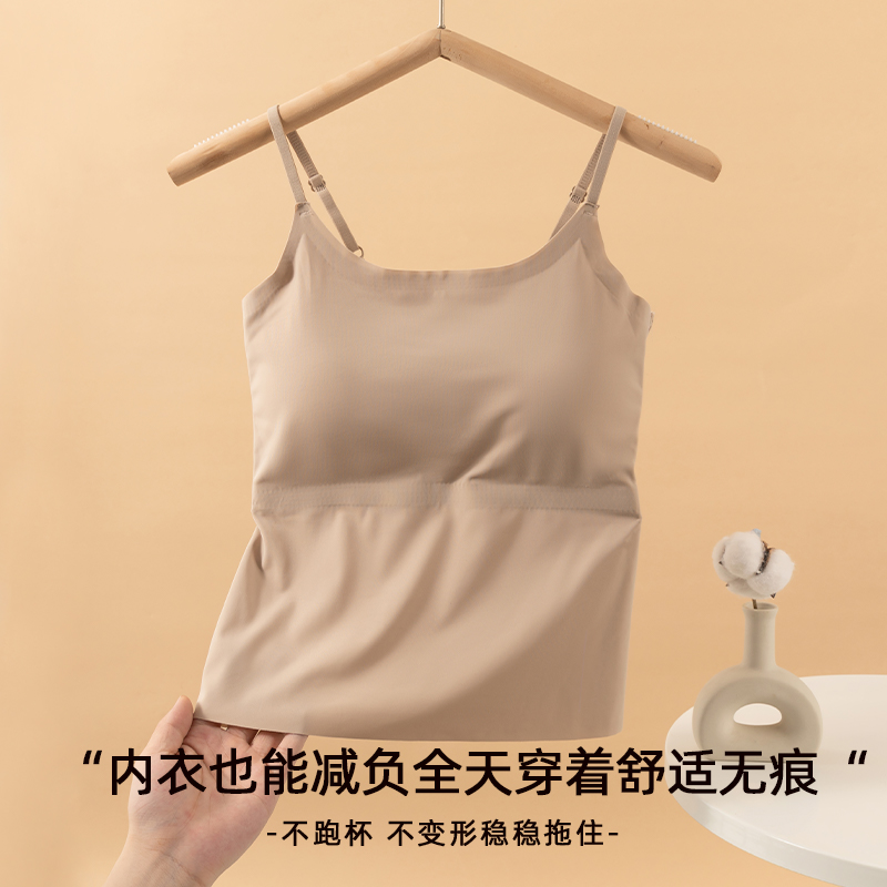 桑蚕丝保暖吊带背心女2025秋加绒加厚发热无痕自带胸垫一体内衣冬