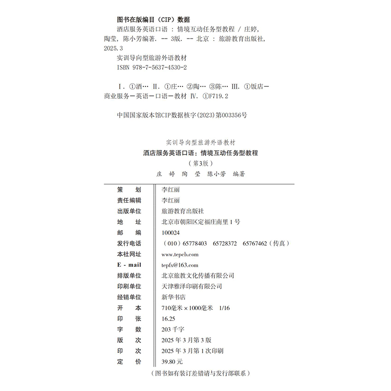 社 9787563745302庄婷陶莹陈小芳编著旅游专业系列教材旅游教育出版 酒店服务英语口语:情境互动任务型教程 第3版