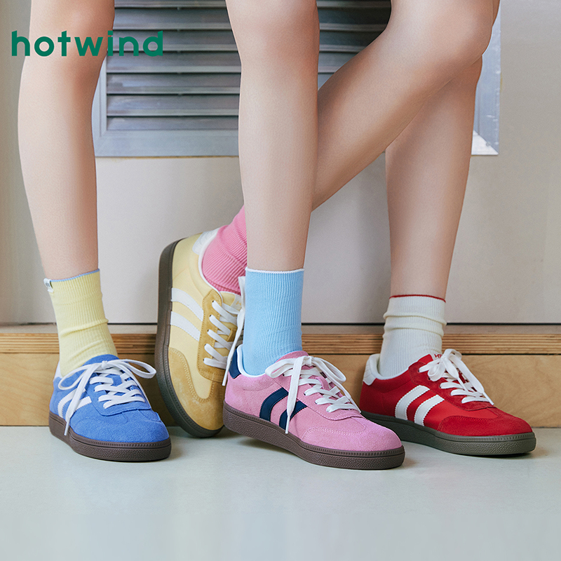 红色运动休闲阿甘鞋 德训鞋 百思图小彩糖25秋新款 女 张予曦同款