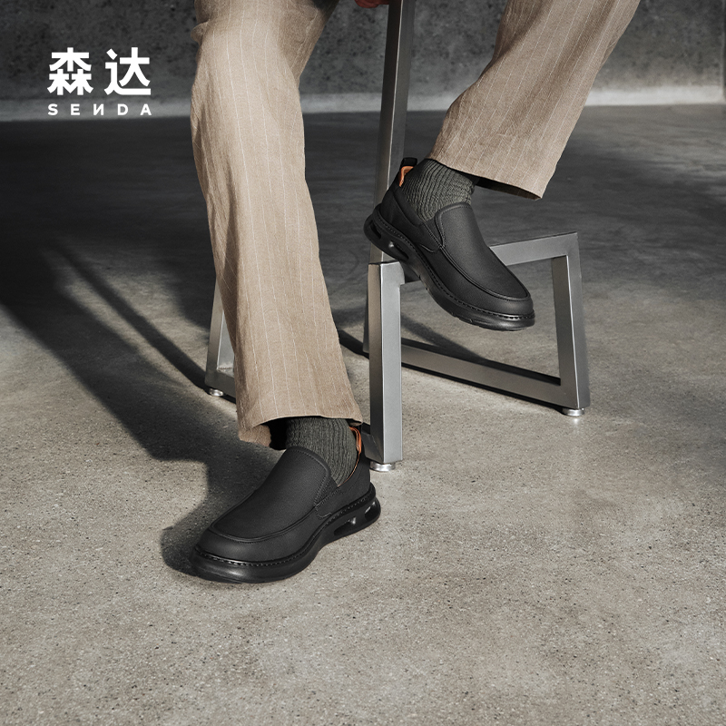 休闲运动鞋 新款 透气黑色皮鞋 男士 回力男鞋 一脚蹬弹力板鞋 2025秋季