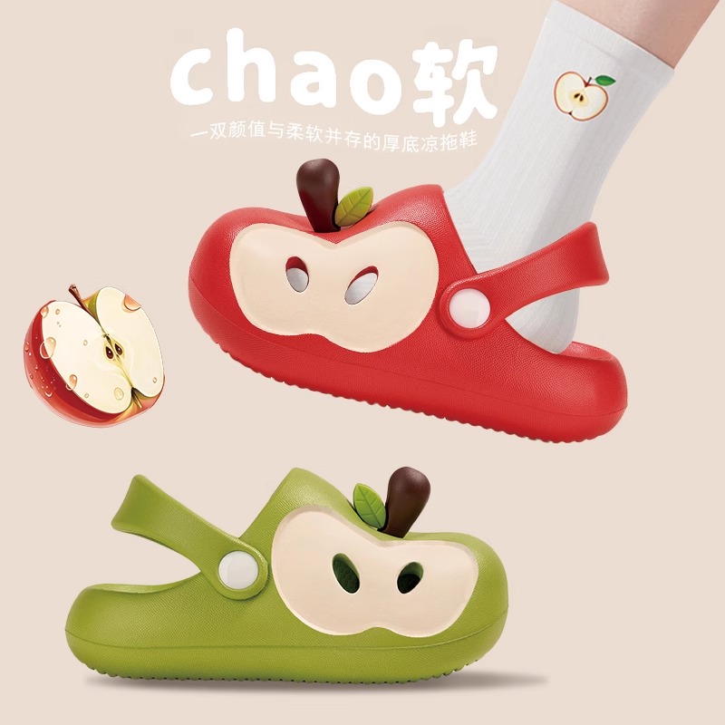 居家室内卡通苹果可爱宝宝亲子拖鞋 新款 女孩 女童秋冬季 儿童棉拖鞋