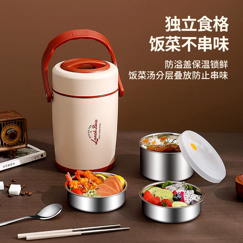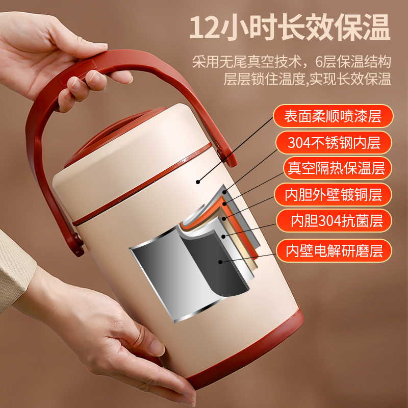 真空三层超长便携饭盒不锈钢保温盒24小时长效保温提桶上班族饭桶