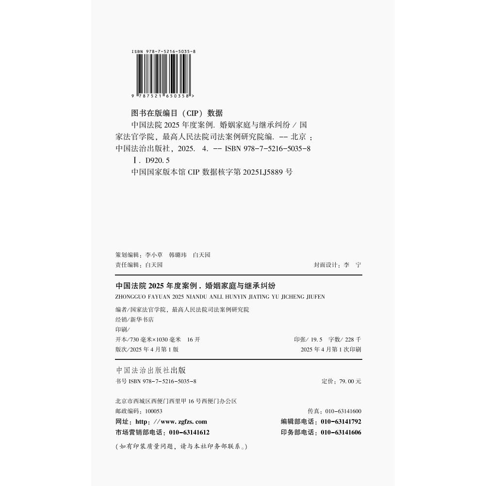 中国法治出版 ·婚姻家庭与继承纠纷 最高人民法院司法案例研究院 社 国家法官学院 中国法院2025年度案例