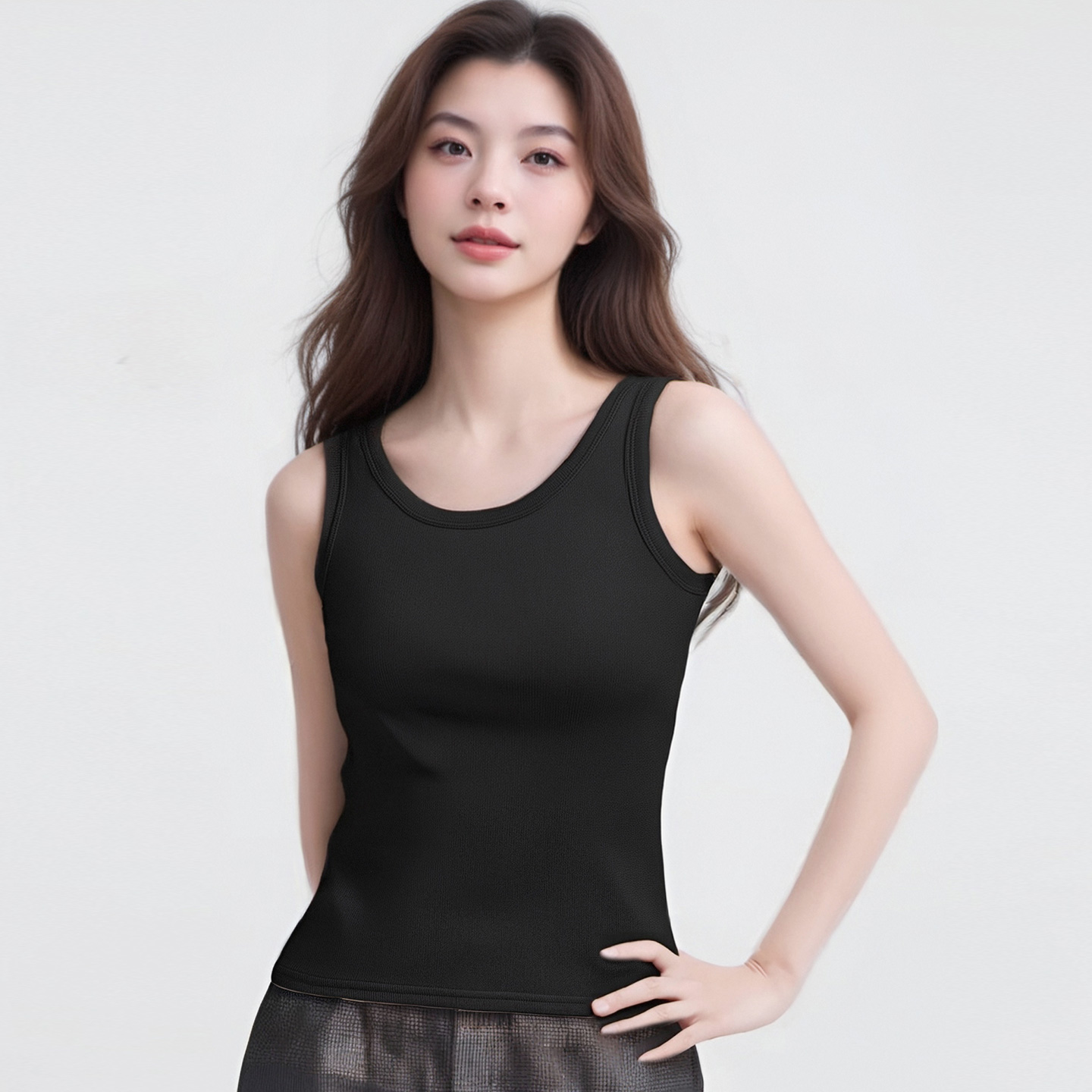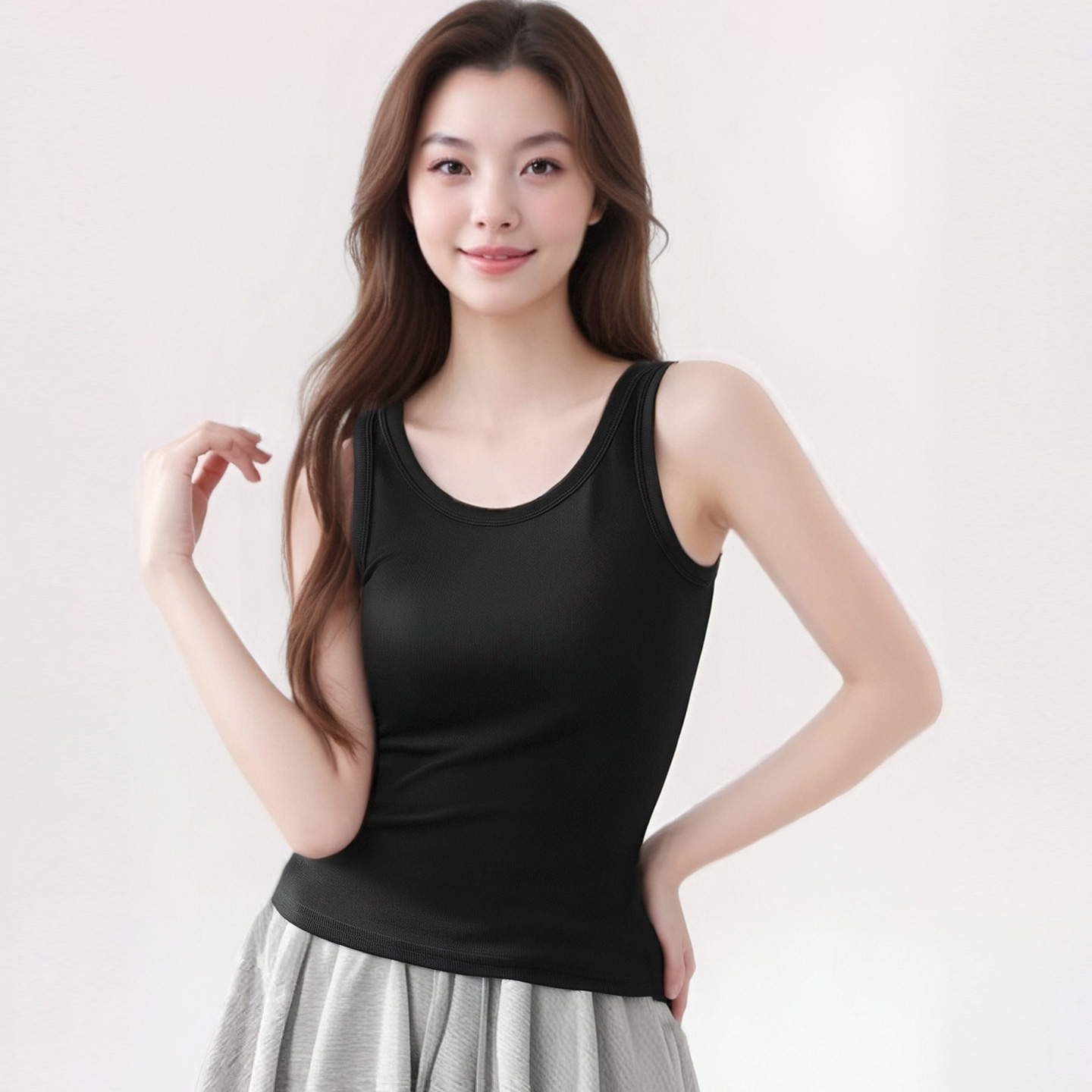 宜而爽罗纹U型领工字背心女士夏内搭运动外穿无袖 宽肩带背心上衣
