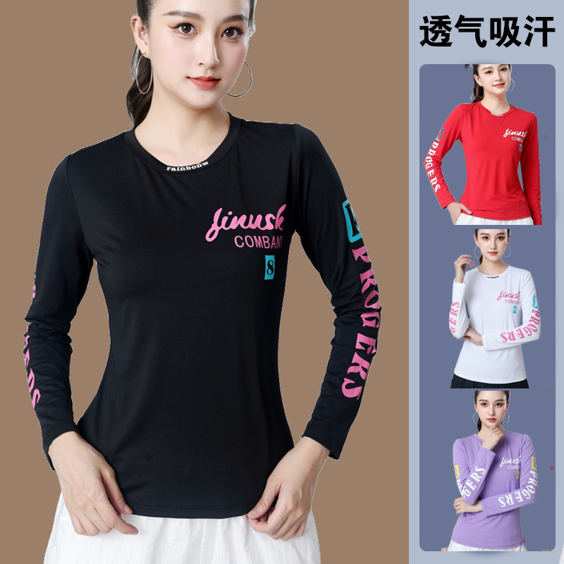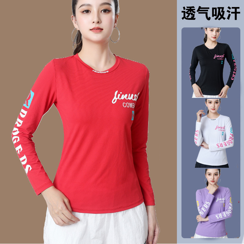 广场舞服装 时尚 新款 高弹长袖 健身操运动跳舞 上衣秋季 速发网红同款