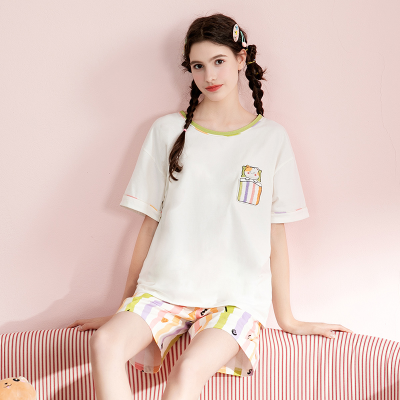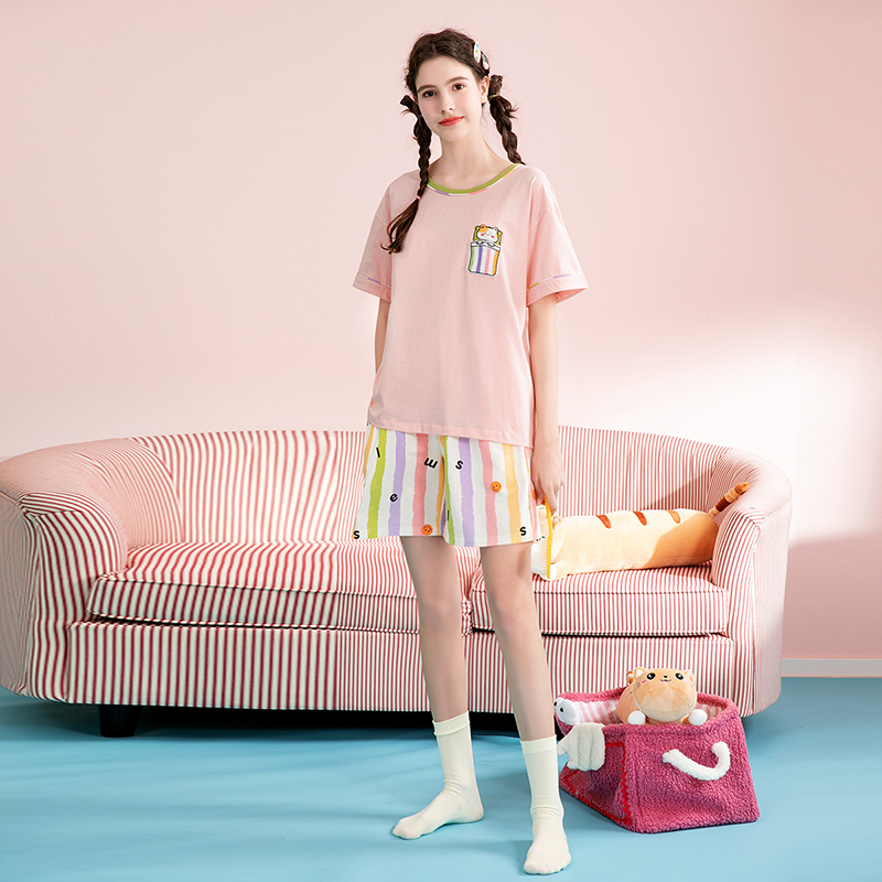 睡衣女卡通小猫家居服两件套装 芬腾2025年夏季 短裤 纯棉短袖 新款