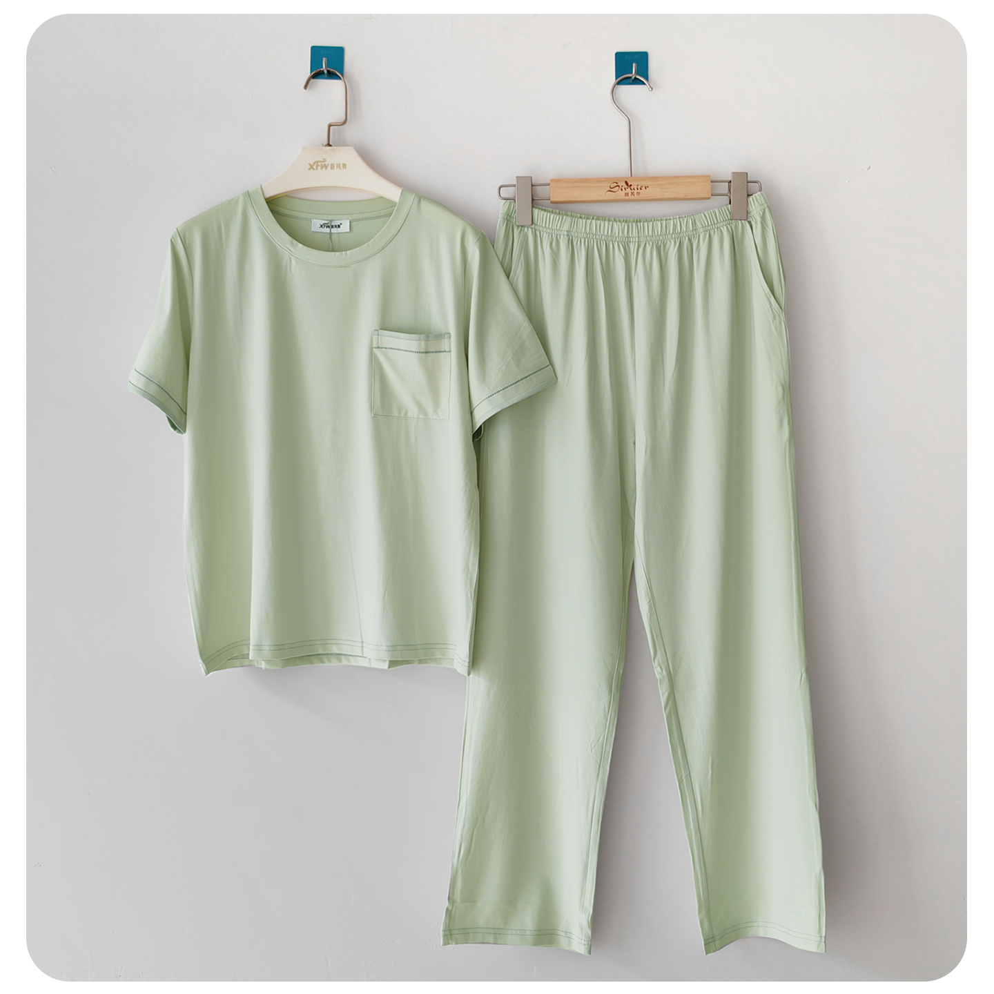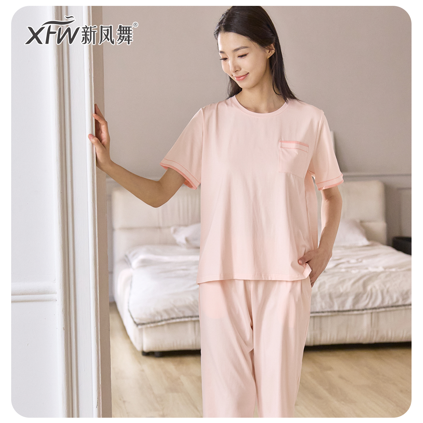 男女套装 新凤舞夏季 长裤 套头家居服睡衣莫代尔棉舒适短袖 睡衣薄款