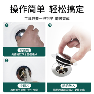 浅口浴缸下水器通用过滤防堵全铜弹跳芯浴盆排水堵水塞子盖子配件