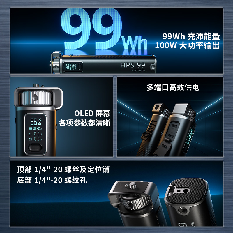 99供电手柄移动手持电源能量棒适用相机电池100W补光灯支架TypeC口充电内置移动电源 斯莫格HPS 3C认证