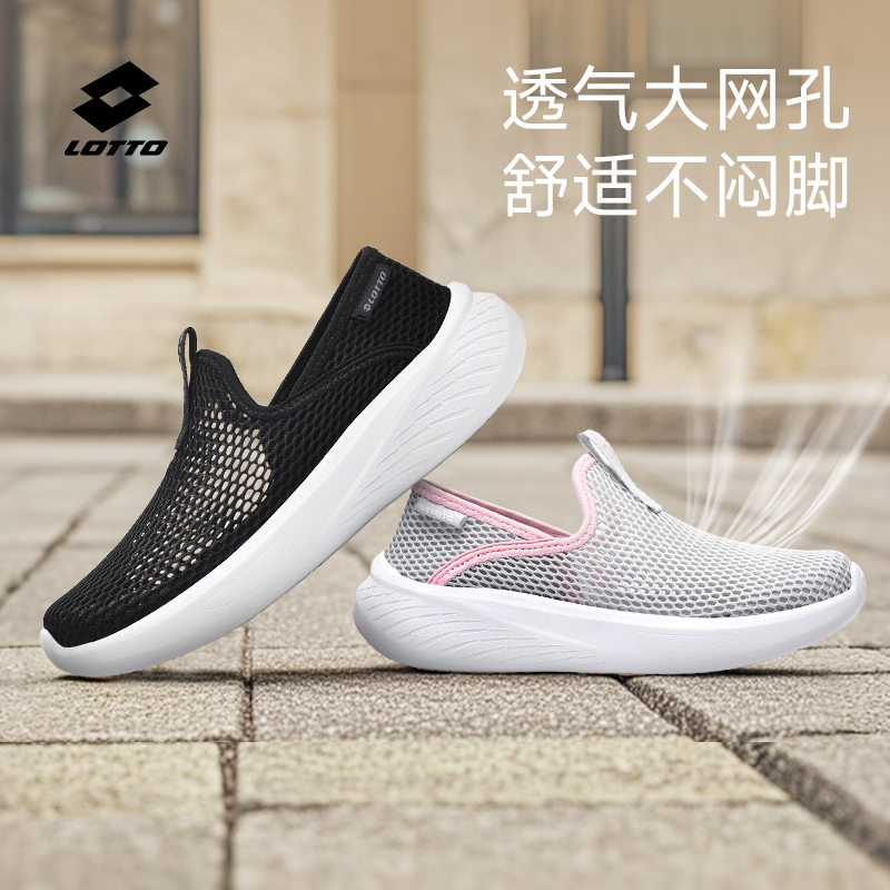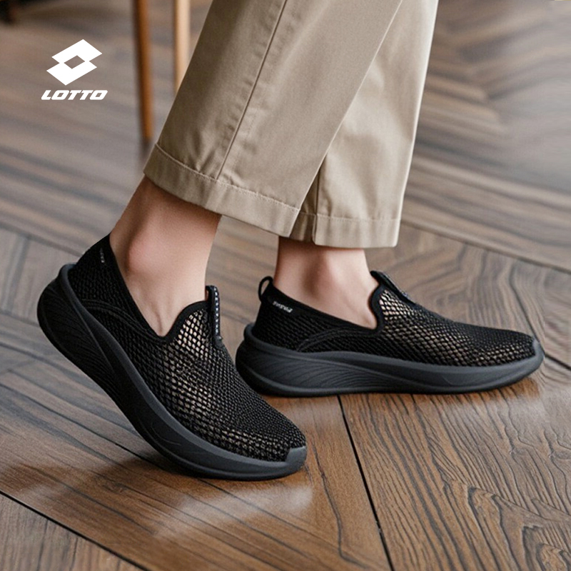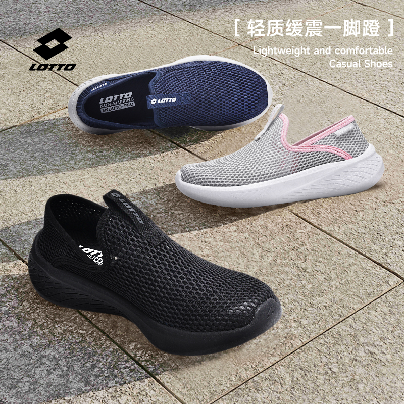秋季 大网孔运动鞋 新款 男士 轻便黑色一脚蹬 网面透气休闲鞋 乐途男鞋