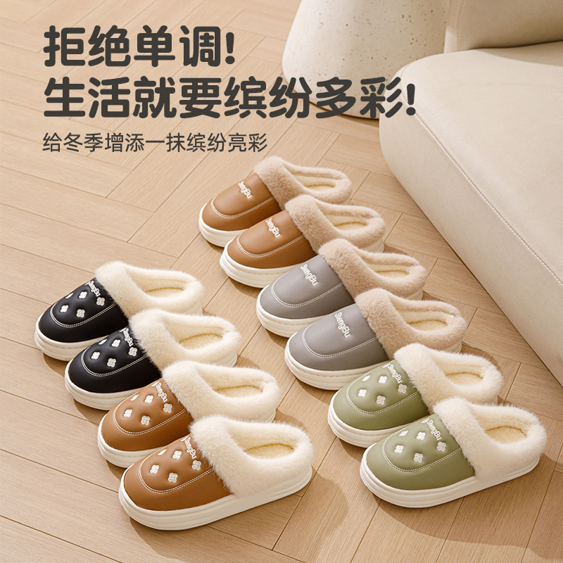 2025新款 冬季 室内家居防滑防臭保暖情侣半包跟加绒厚底 女款 棉拖鞋