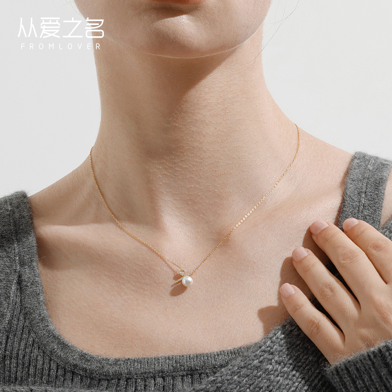 旭平月白樱落项链女人鱼姬眼泪仿珍珠流苏气质创意礼盒法式 锁骨链