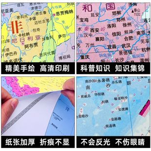 正版 饰手绘挂图小学生少儿知识教室商务用儿童版 行政国家古诗全国超大学习 早教启蒙地理高清挂画房墙贴墙面装 中国地图世界24年新版