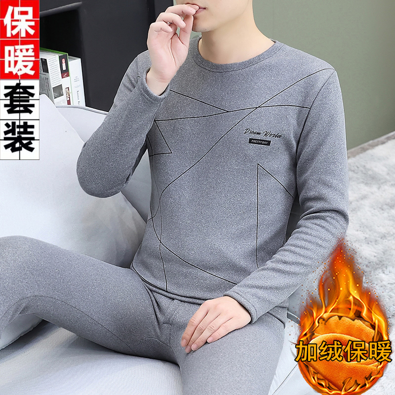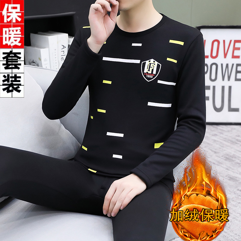 抗寒打底衫 男生冬季 圆领修身 青少年加绒加厚秋衣秋裤 保暖内衣套装