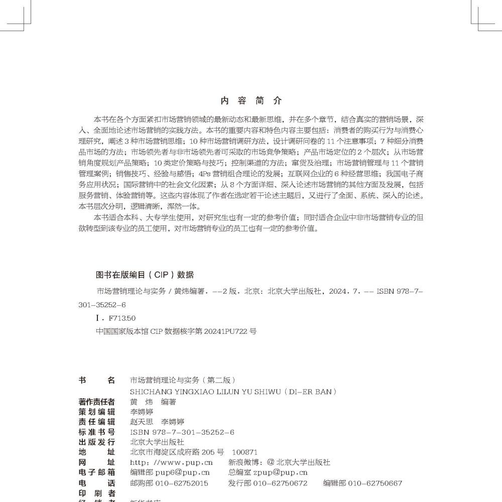 社 市场营销理论与实务 北京大学出版 黄炜 9787301352526 第二版