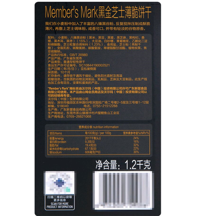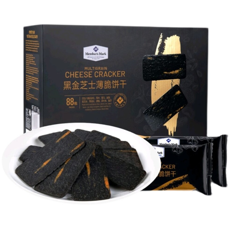山姆代购 MM黑金芝士薄脆咸味饼干1200g五谷黑芝麻休闲零食小点心