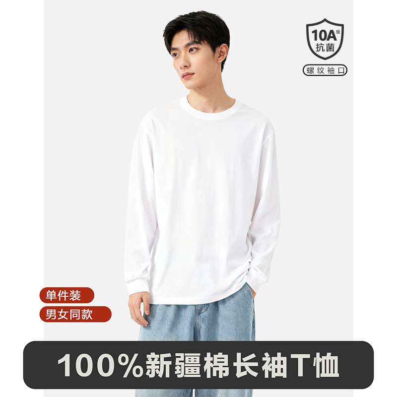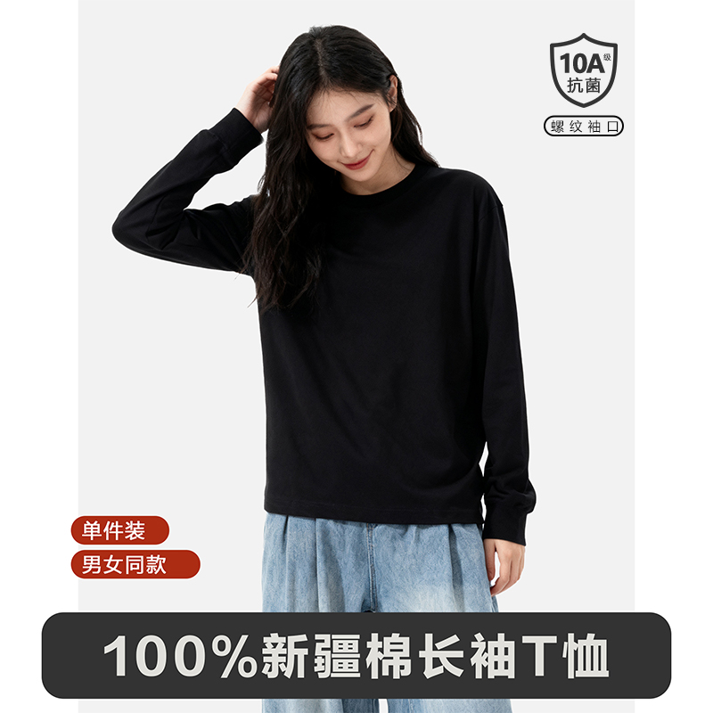 庆园羊 T恤打底衫 100%纯棉 百搭不透长袖 男女同款 QINGYUANYANG