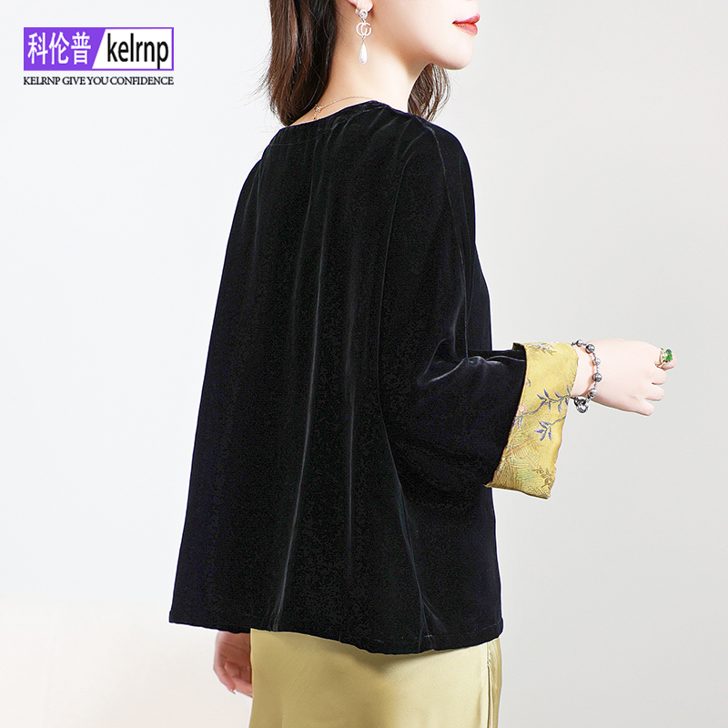 重磅真丝绒t恤女2025秋新减龄国风长袖 纯色植绒香云纱桑蚕丝上衣