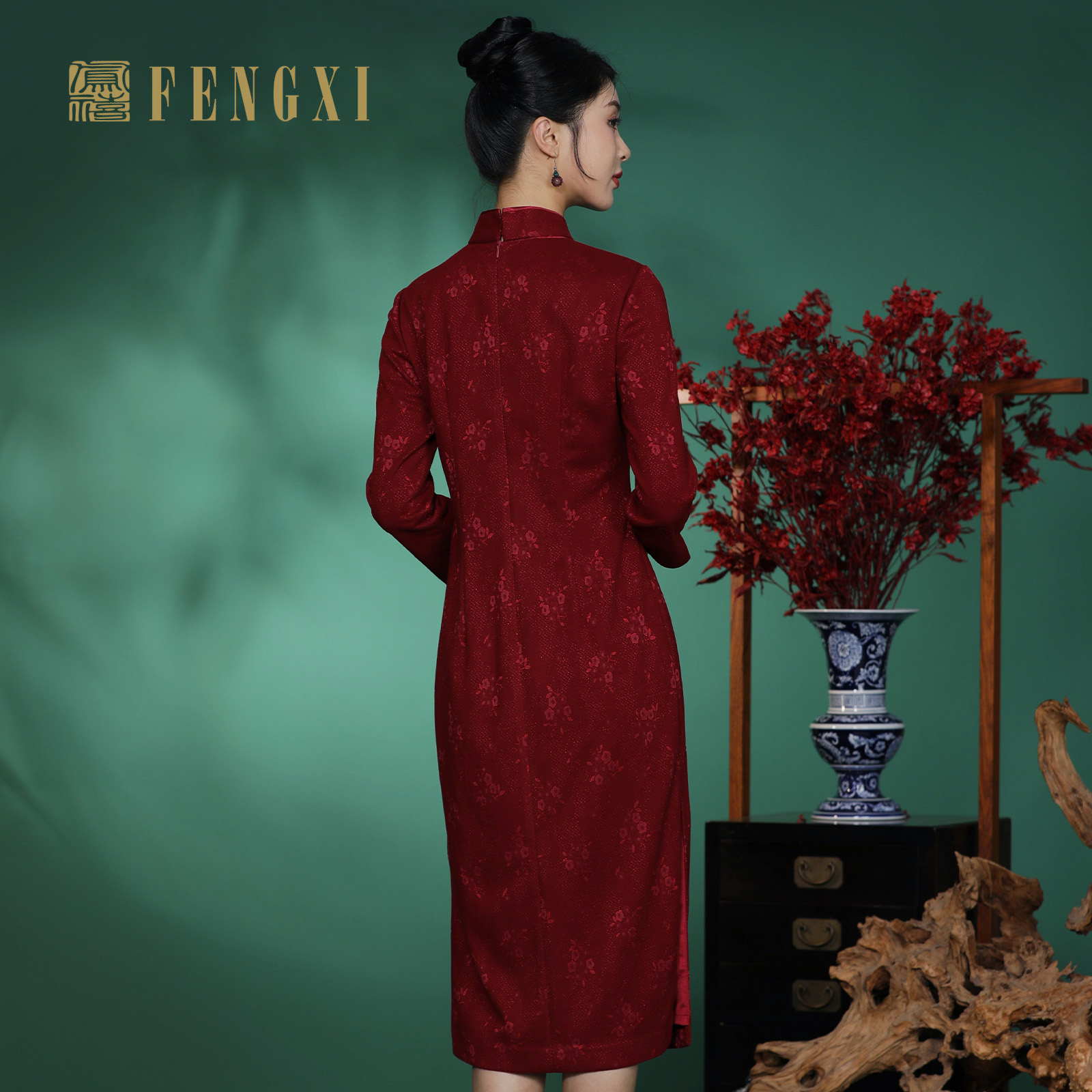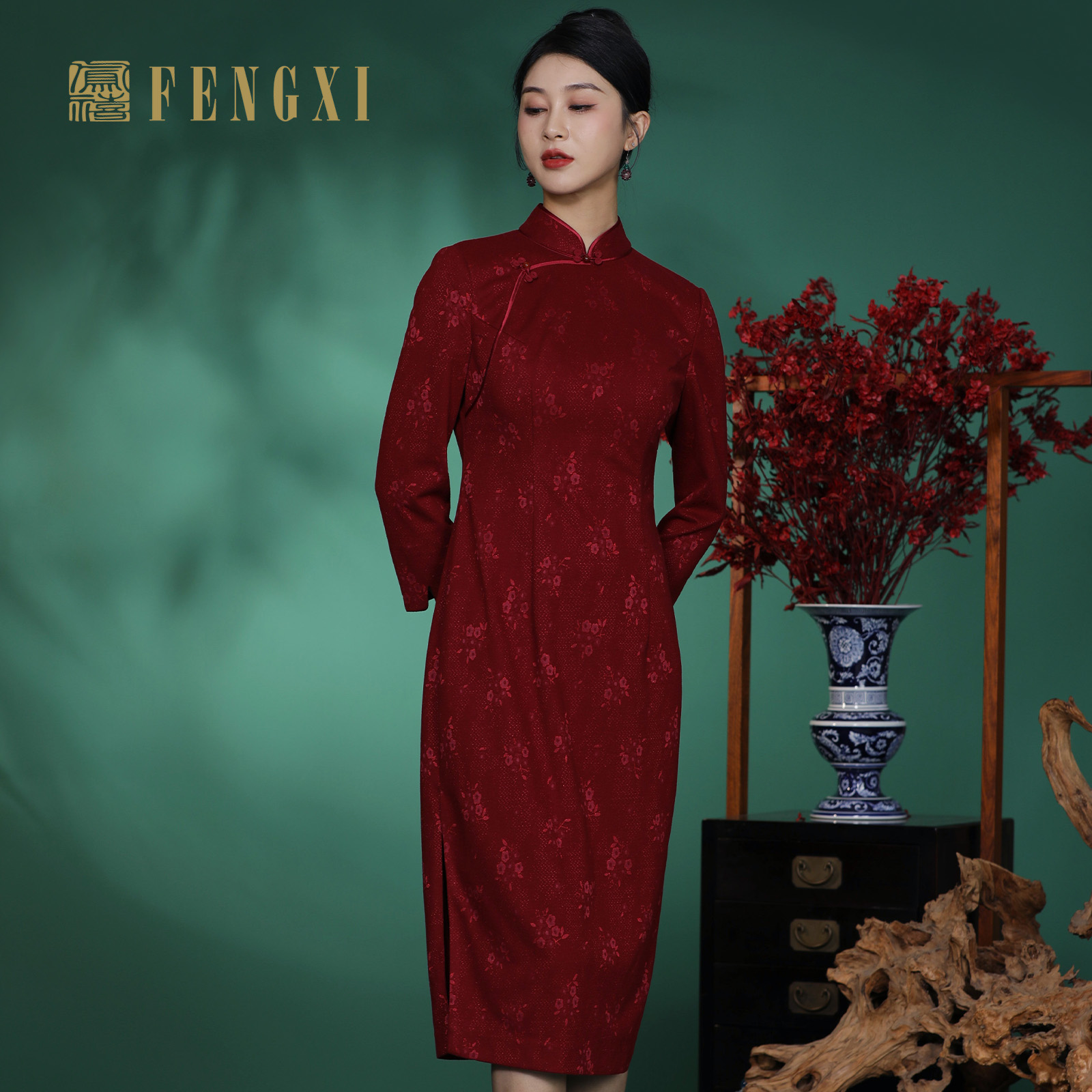 菲梦伊原创钉珠提花连衣裙女秋季 国风高端气质贵妇旗袍裙子 新中式