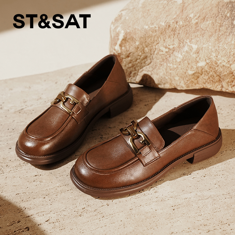 女2024新款 复古小皮鞋 秋冬季 圆头平底鞋 深口单鞋 星期六乐福鞋