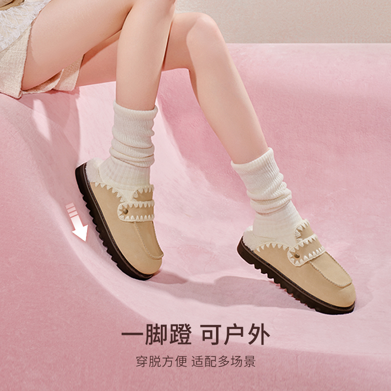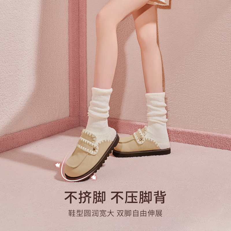 冬季 雪地靴保暖真皮勃肯鞋 CEJ01DH4 女鞋 TATA他她小羊拖加绒毛毛鞋