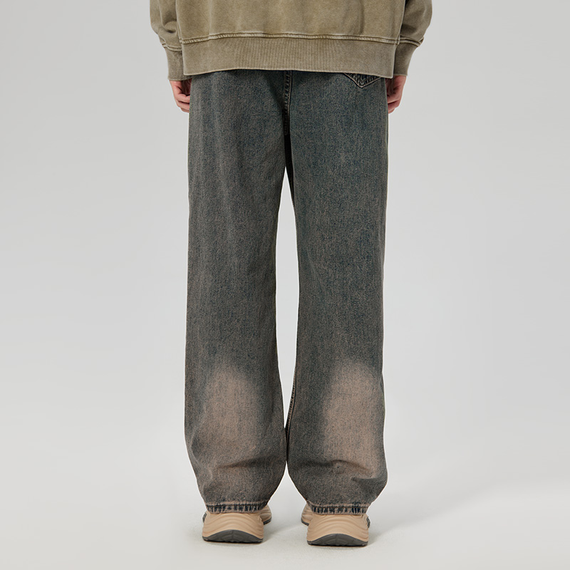 男款 长裤 春秋新款 复古阔腿秋季 休闲宽松直筒美式 回力星空纹牛仔裤