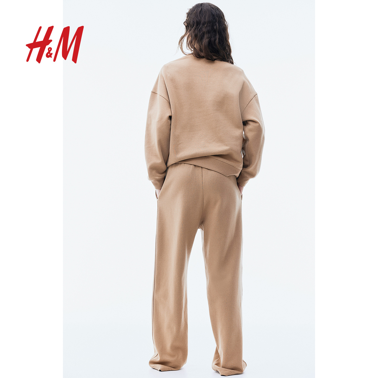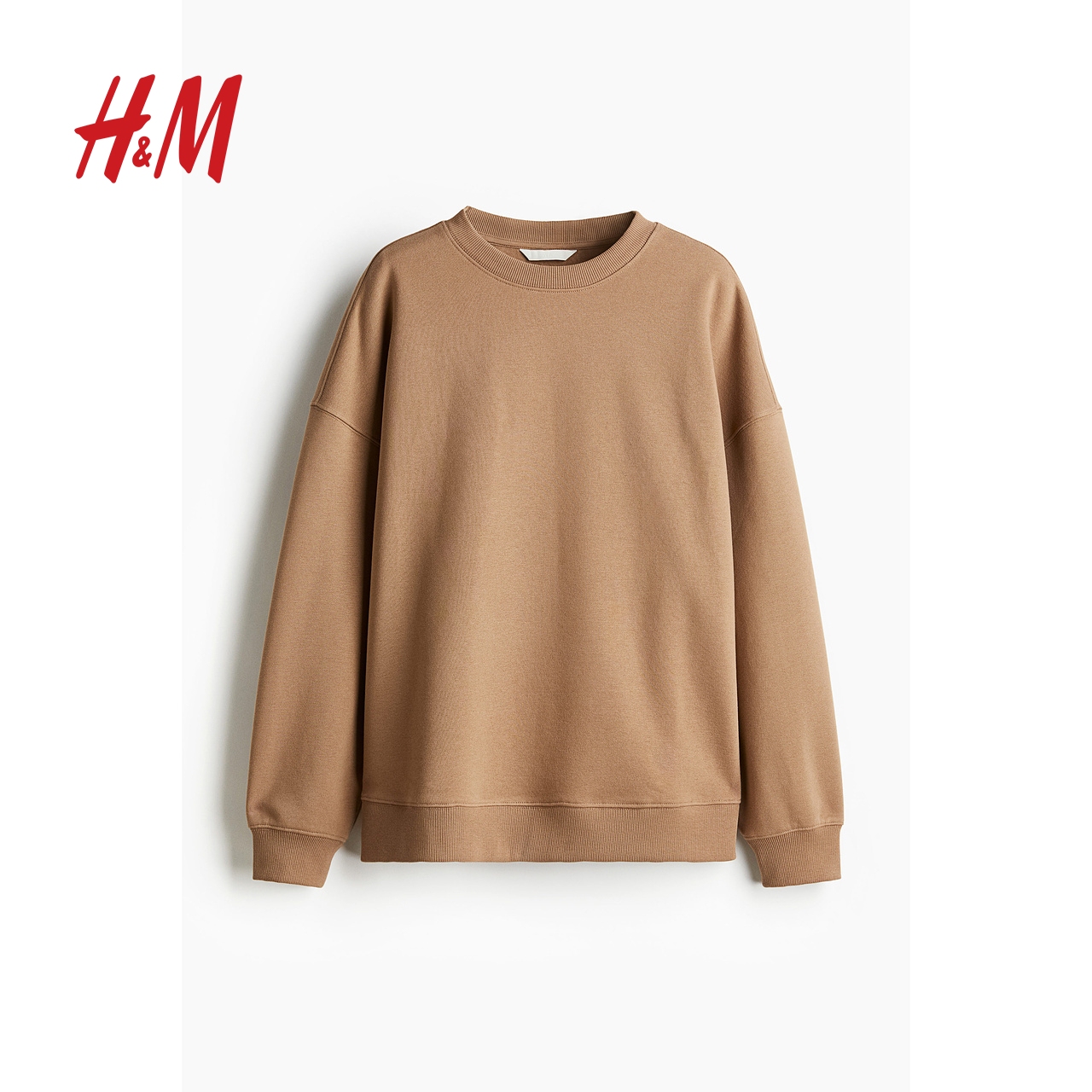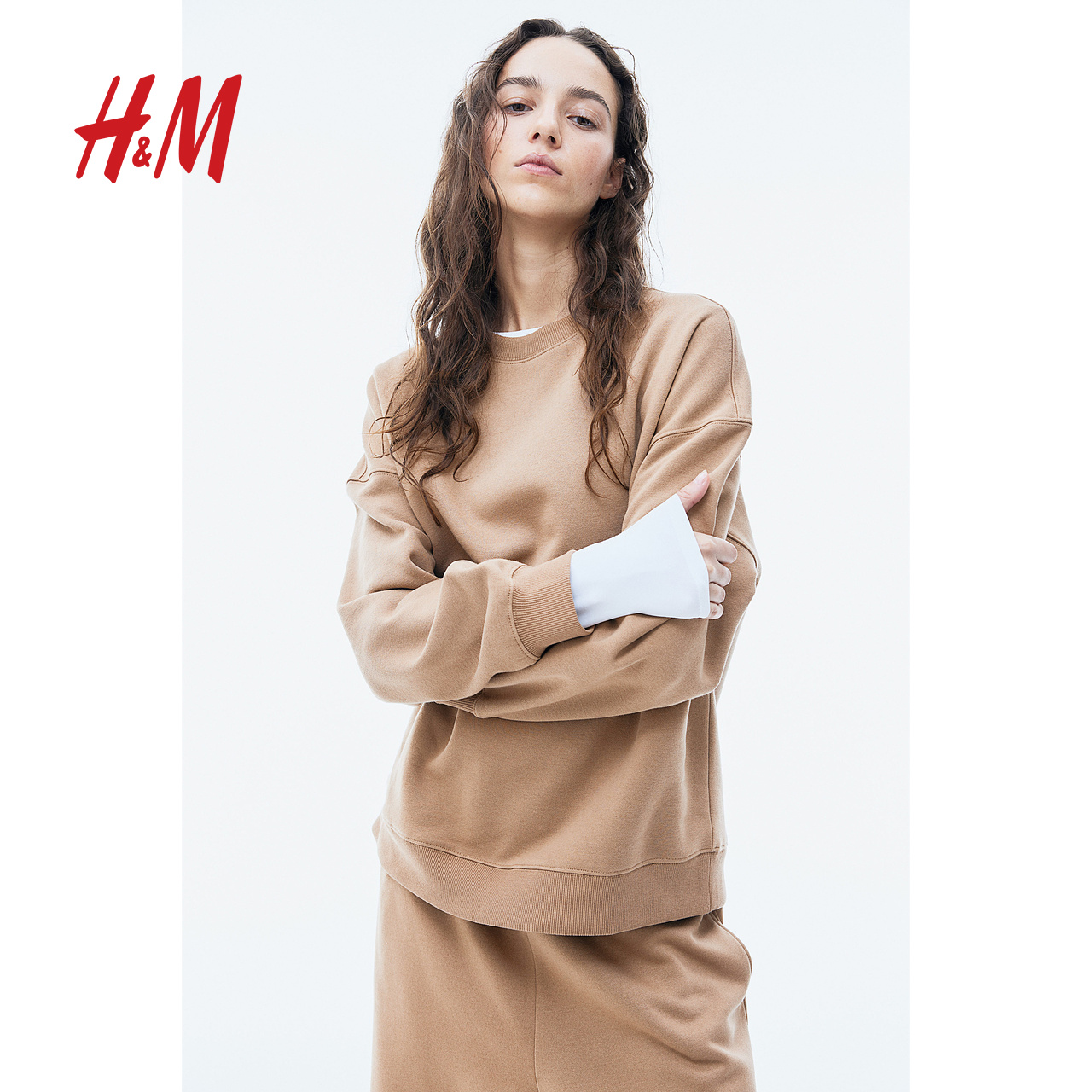 宽松简约套头上衣1243667 圆领加绒落肩长袖 HM女装 miu系卫衣秋季