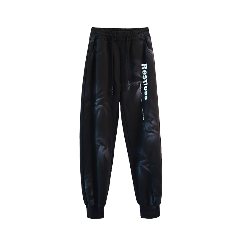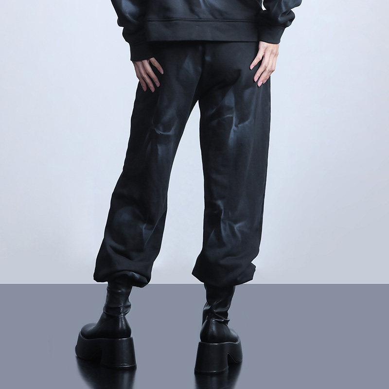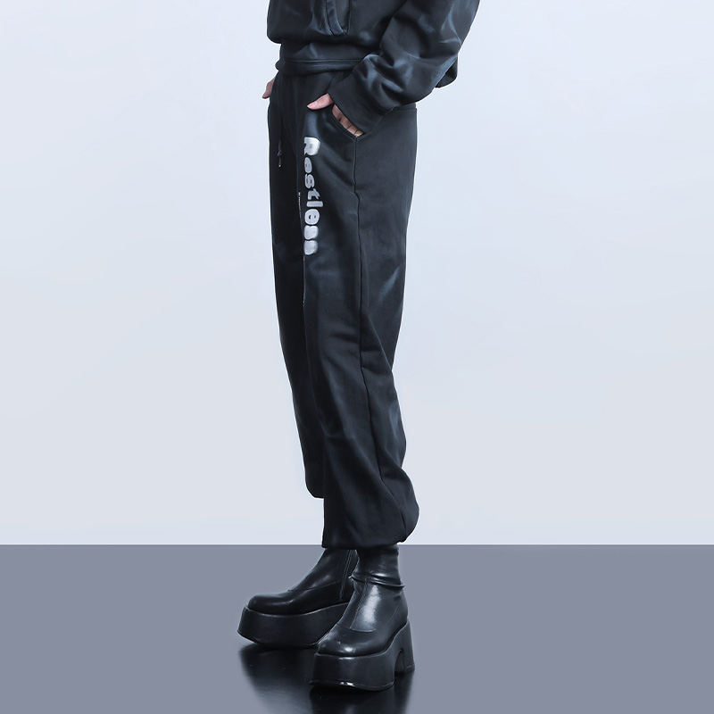 新款 2025春季 女式 黑色个性 子 纳帕佳宽松长款 休闲小众裤 印花束脚裤