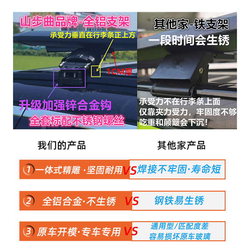 车顶行李架横杆行李箱越野SUV汽车通用支架铝合金免打孔平台双轨