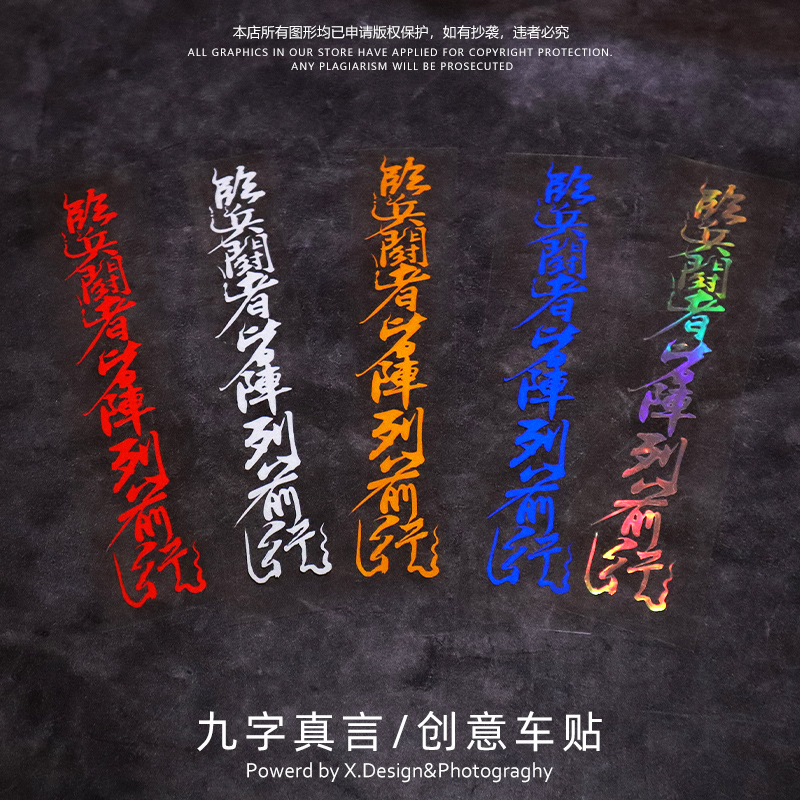 九字真言创意文字个性 饰贴 反光车贴山地自行车越野汽车防水防晒装