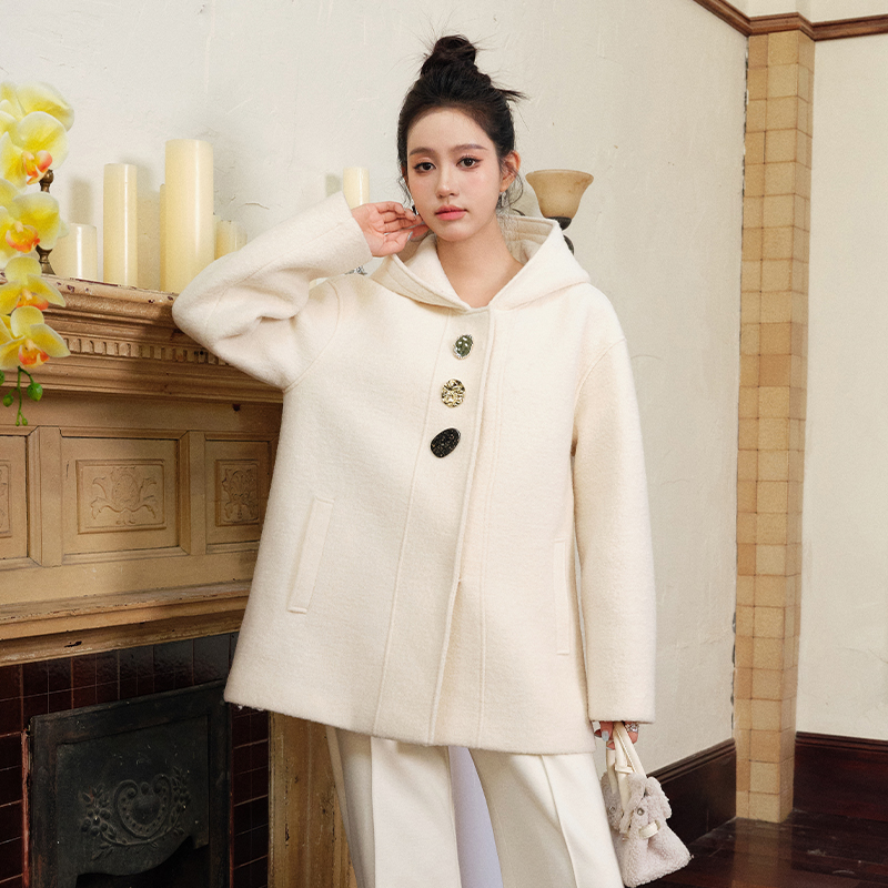 圆领大衣女小个子气质毛呢外套 高端羊毛双面呢短款 2025年春季 新款