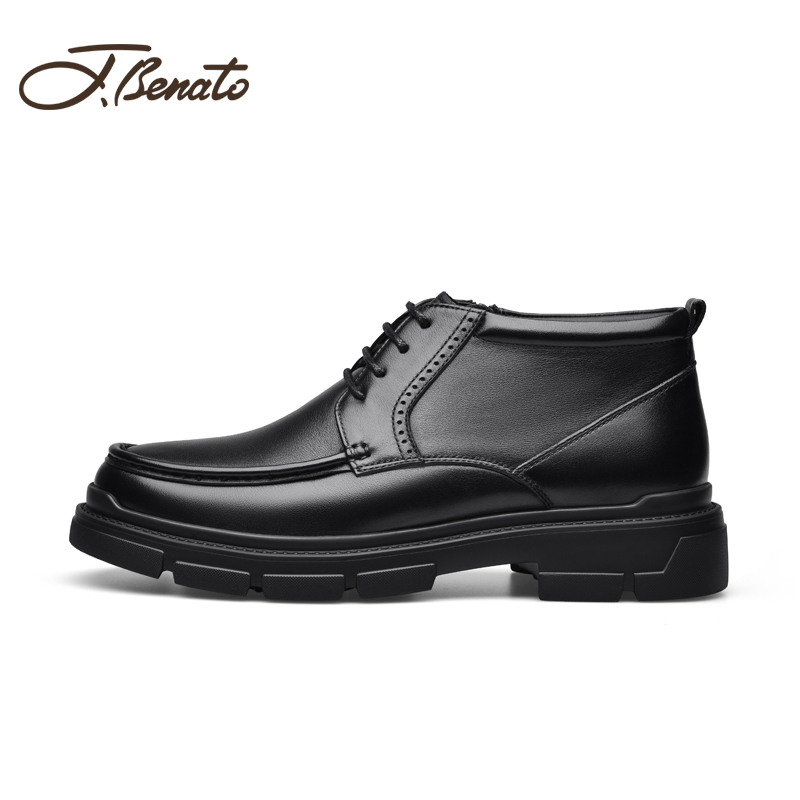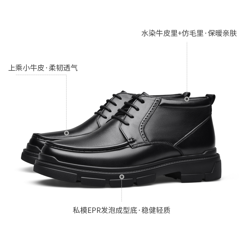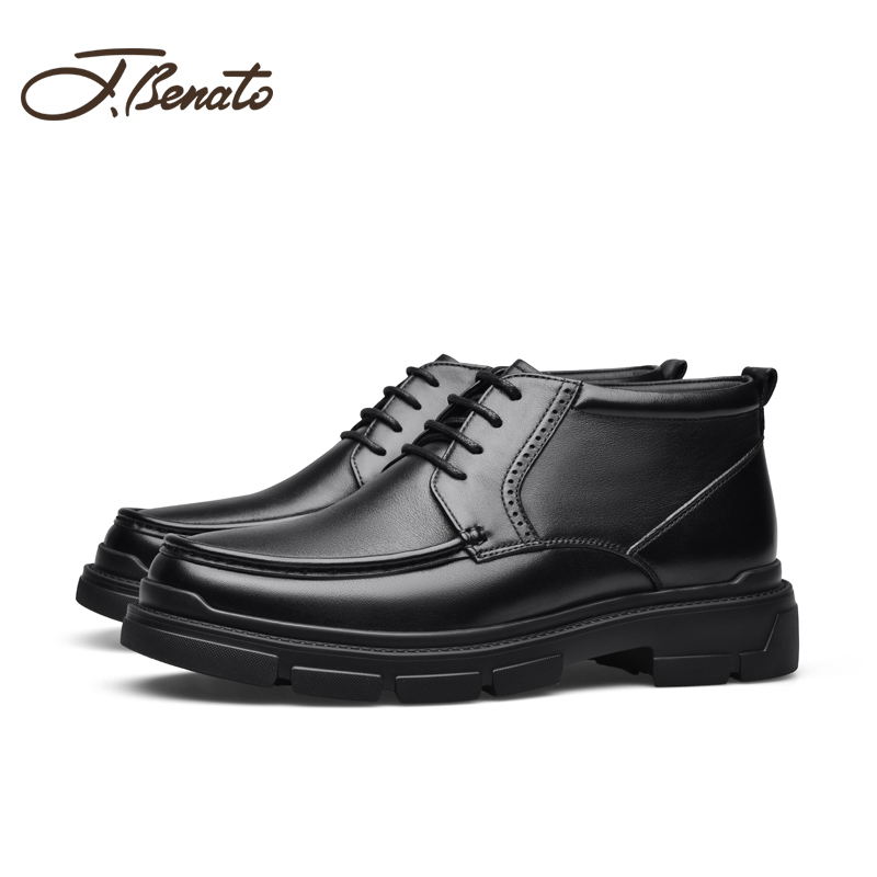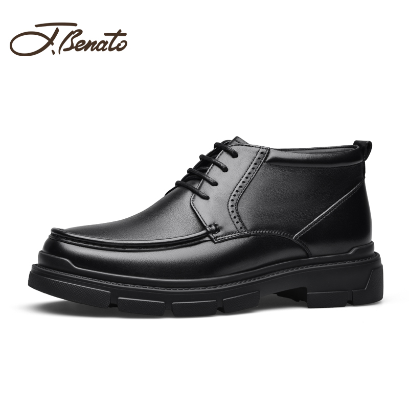 新款 jbenato宾度男鞋 2024冬季 皮靴男商务马丁靴加绒保暖棉鞋 男士