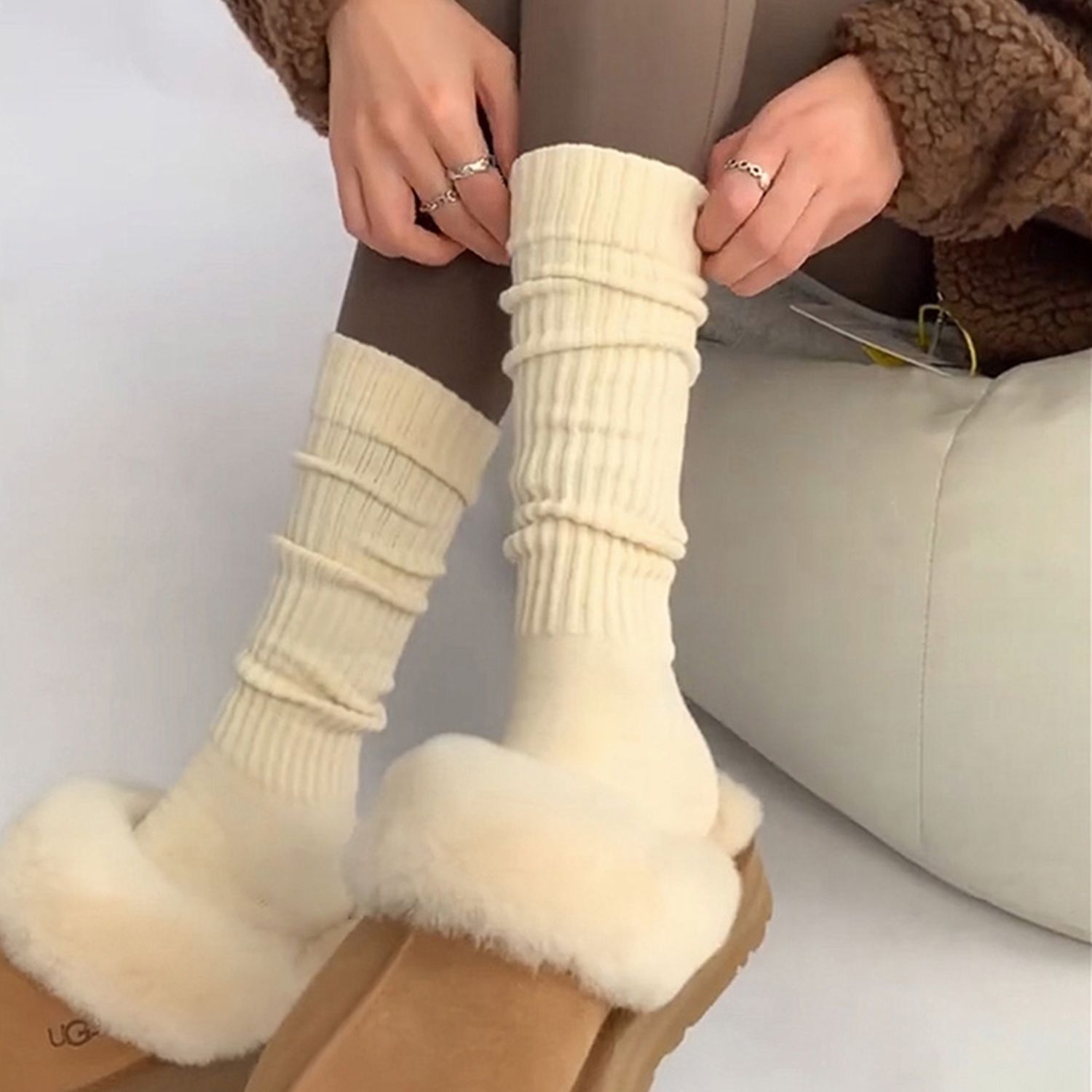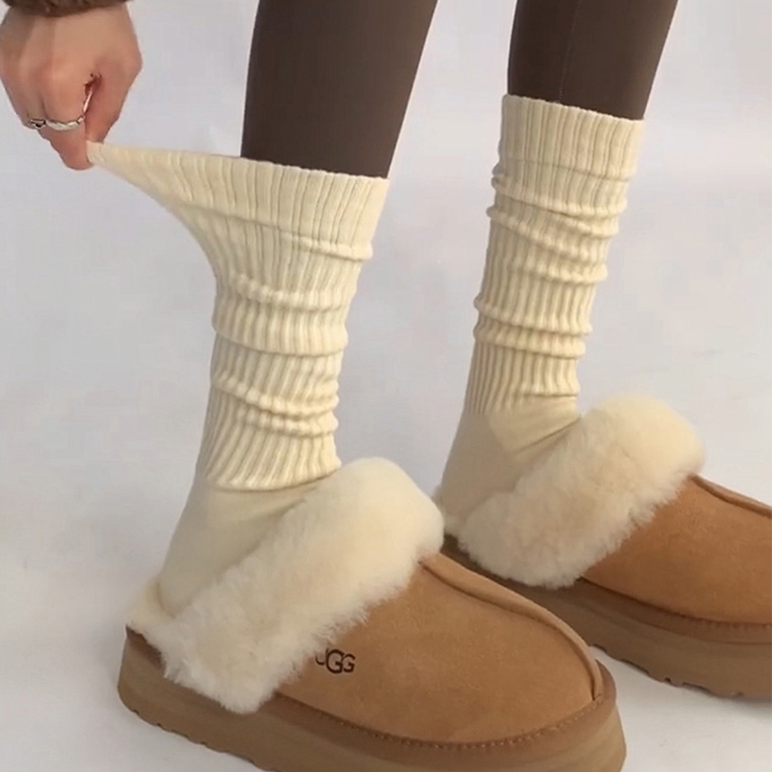 袜子中筒长袜女秋冬 配 小腿袜女春秋款 显瘦白色长筒堆堆袜鲨鱼裤