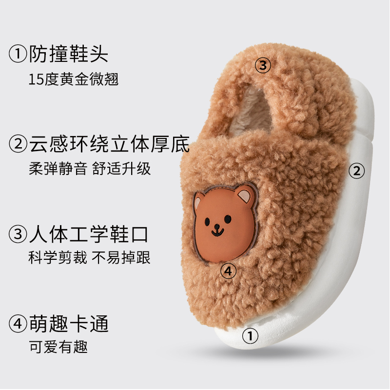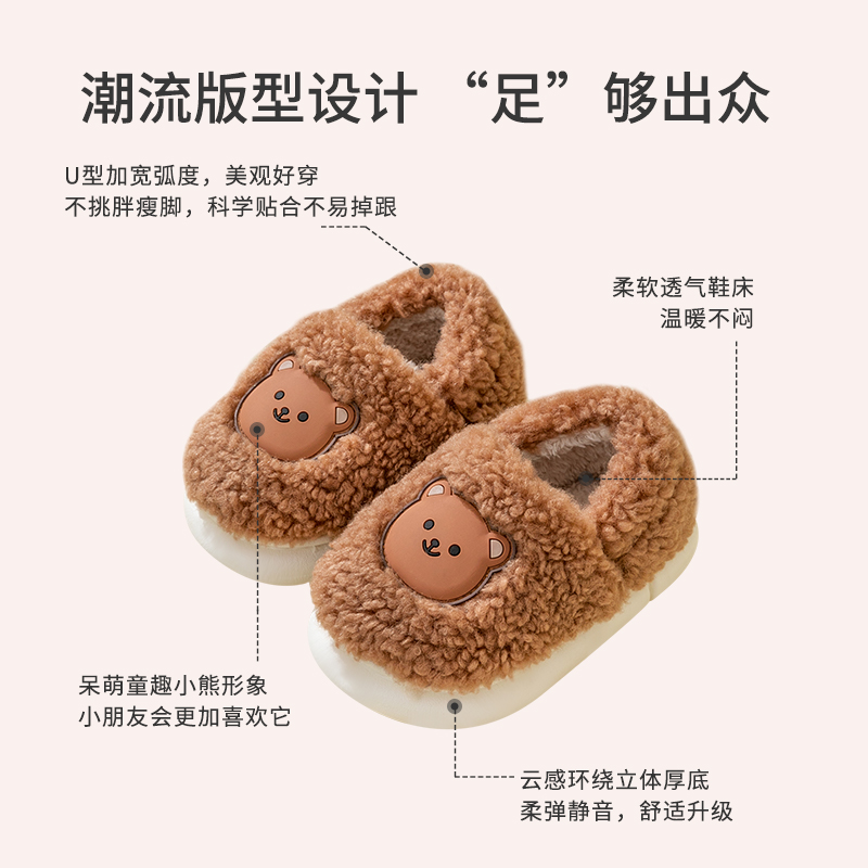 居家室内女宝宝2岁1保暖毛毛棉鞋 儿童棉拖鞋 包跟男童秋冬2024新款