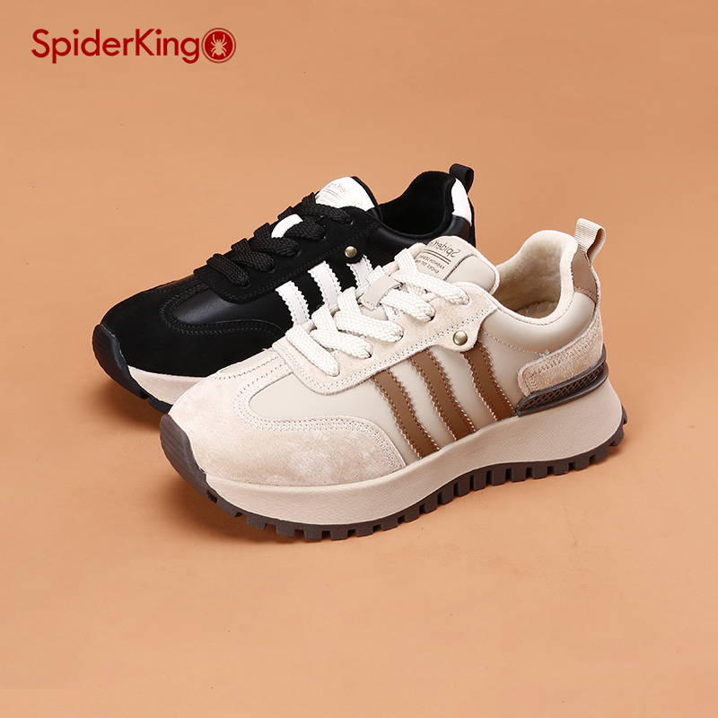 轻便软底棉鞋 加绒运动鞋 女2024年冬季 蜘蛛王小个子厚底增高老爹鞋