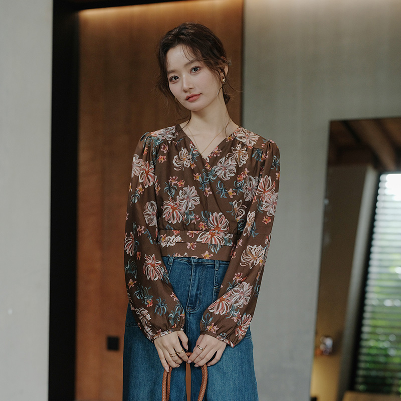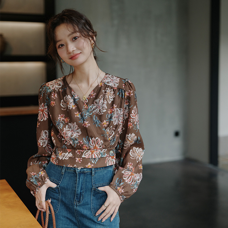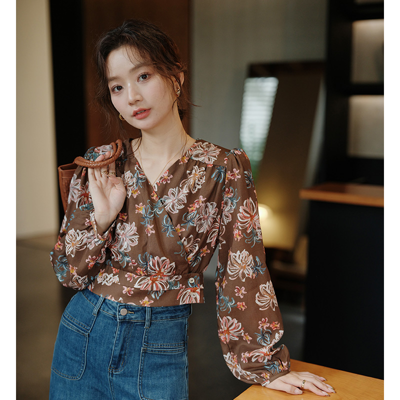 衬衫 冠幂100%棉秋季 长袖 小个子衬衣设计小众休闲上衣百搭短款 女装