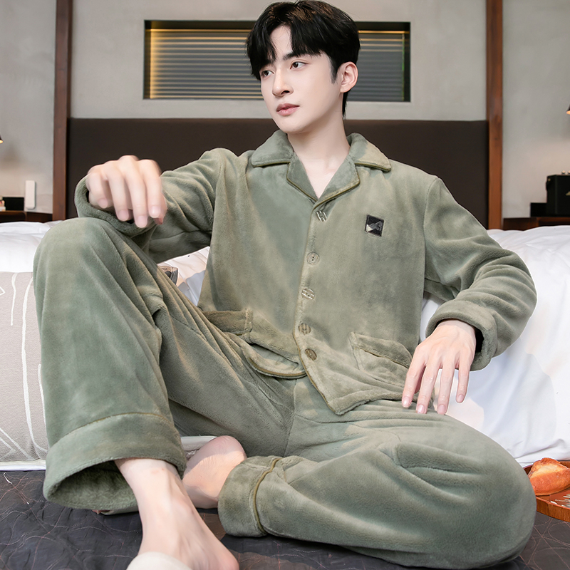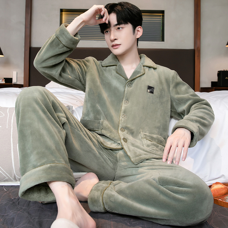 保暖加厚加绒珊瑚绒法兰绒青中年家居服男 睡衣秋冬款 2025新款 男士